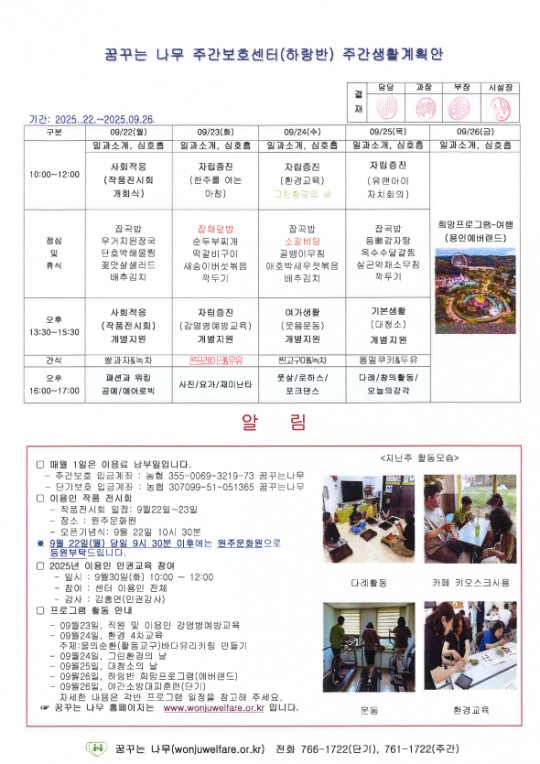 라온반, 찬솔반, 윤슬반, 하랑반 주간계획안(2025.09.22~2025.09.26)