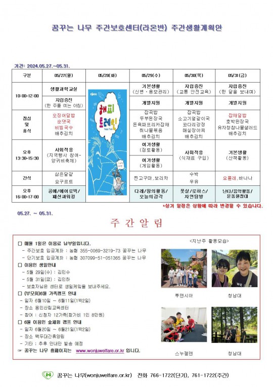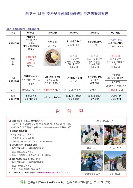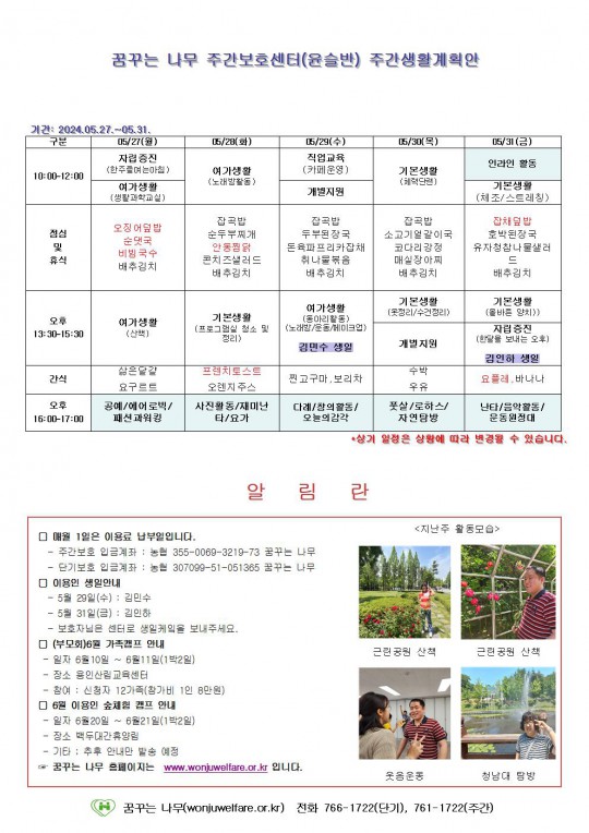 2024.05.27 ~ 2024.05.31 주간보호 주간계획안입니다.