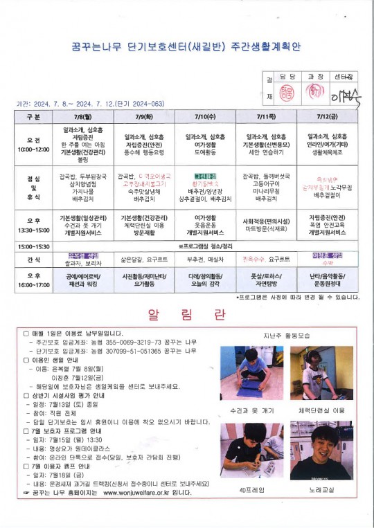 주간계획안(새길, 이룸)2024.07.08~