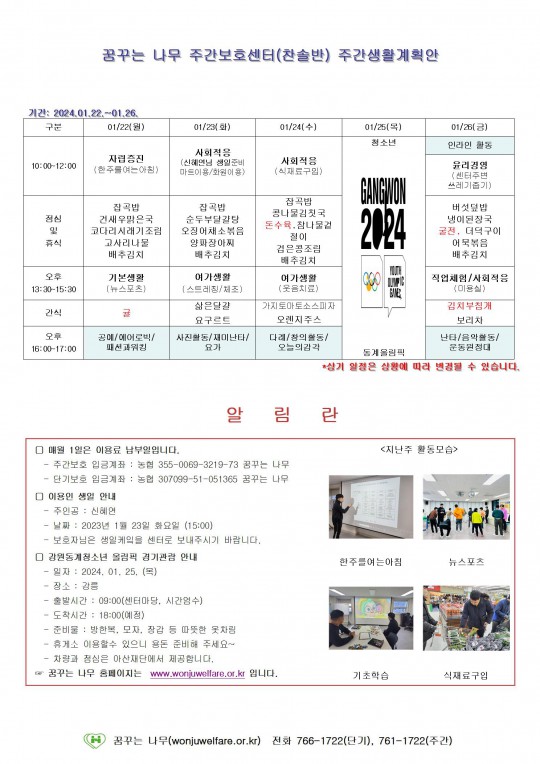 2024.01.22~2024.01.26 주간계획안입니다.