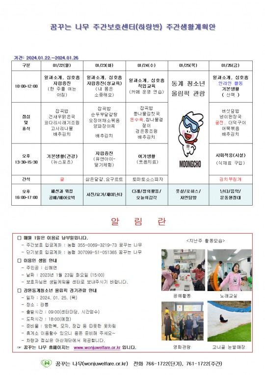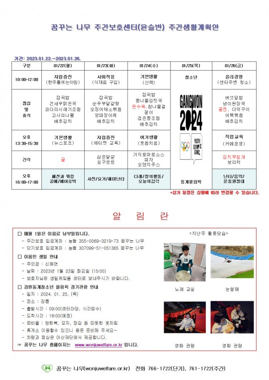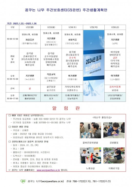 주간계획안(윤슬, 찬솔, 하랑, 라온)2024.01.22~