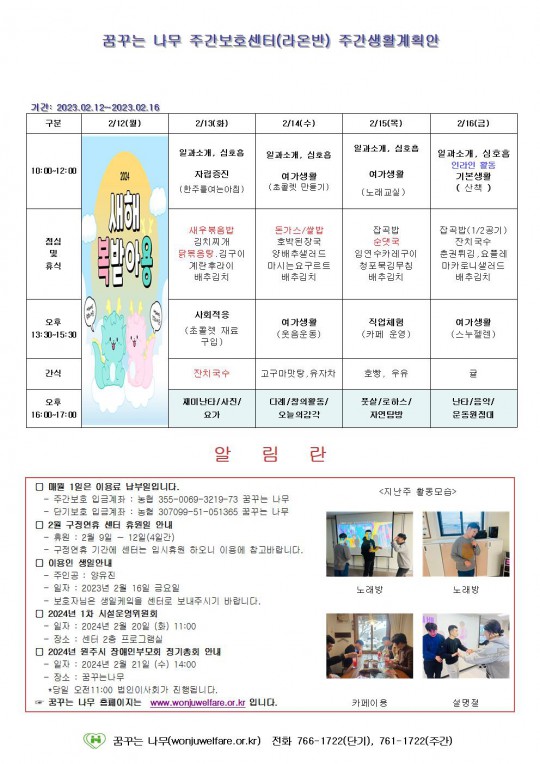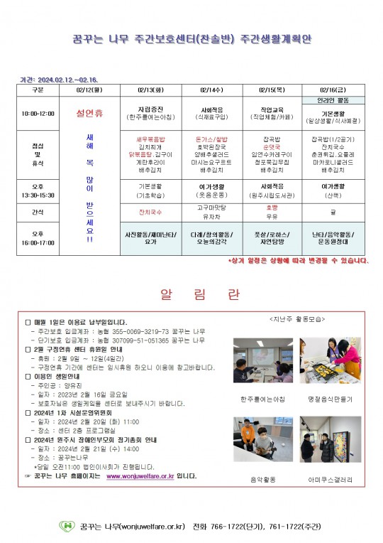 2024.02.12~ 2024.02.16 주간계획안입니다~
