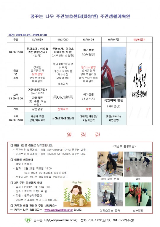 2024.02.26 ~ 2024.03.01 주간계획안입니다.