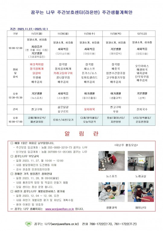 주간계획안(하랑/윤슬/찬솔/라온)2023.11.27~
