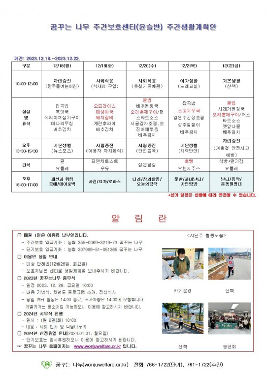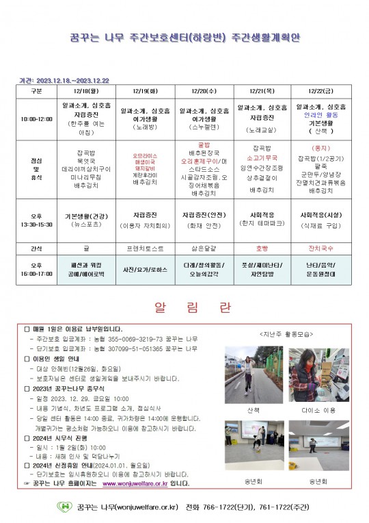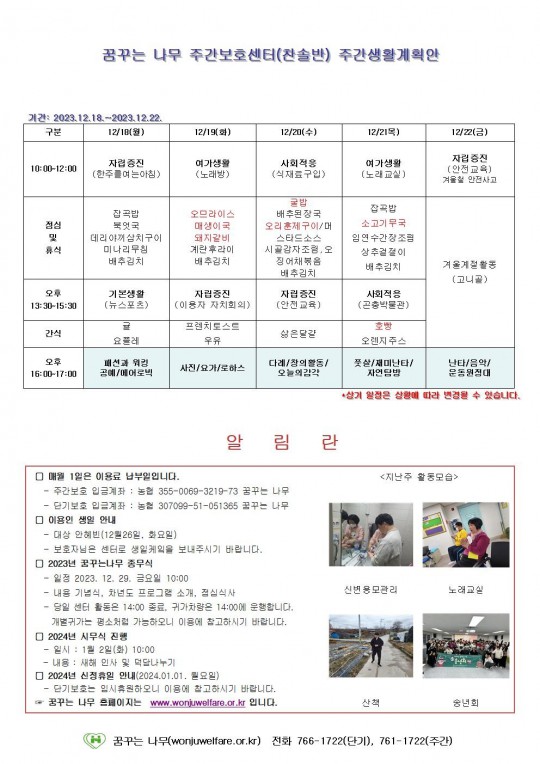 주간계획안(하랑/윤슬/찬솔/라온)2023.12.18~