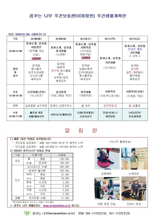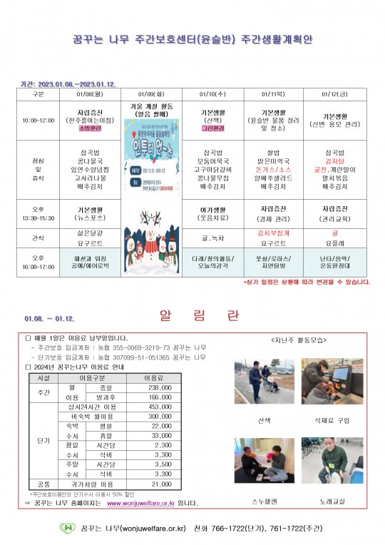 주간계획안(윤슬, 찬솔, 라온, 하랑)2024.01.08~