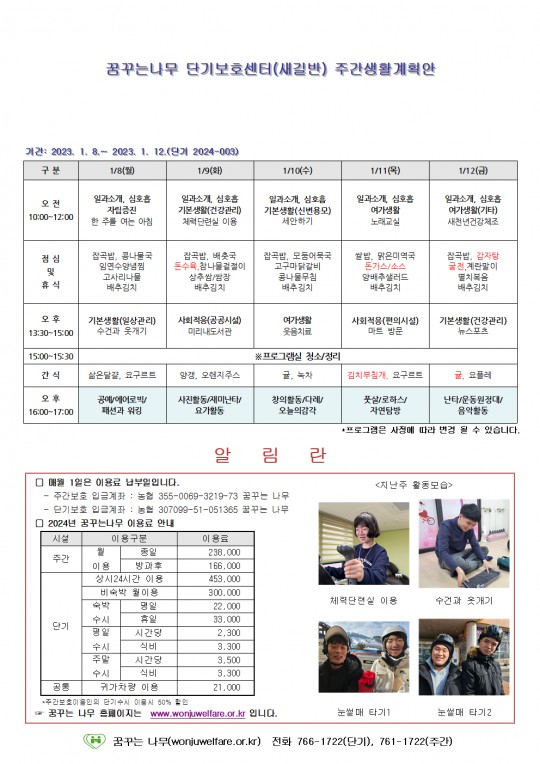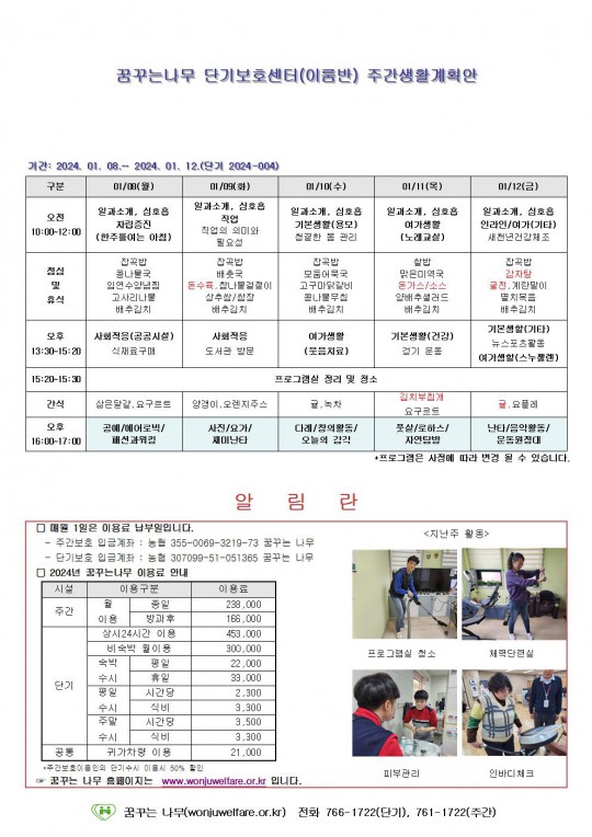 주간계획안(이룸, 새길)2024.01.08~