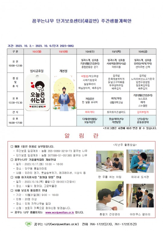 주간계획안(새길/이룸) 2023.10.04~