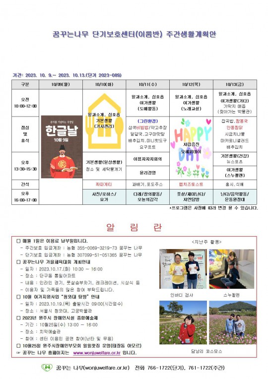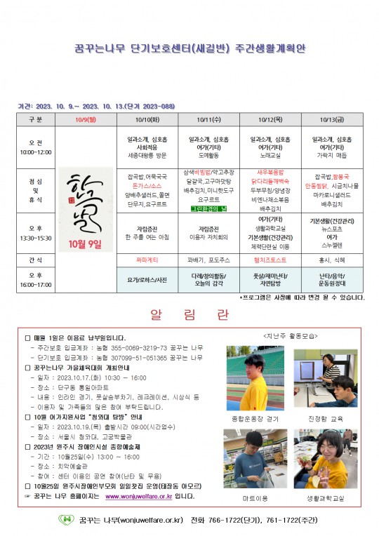 주간계획안(새길/이룸) 2023.10.09~