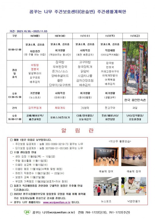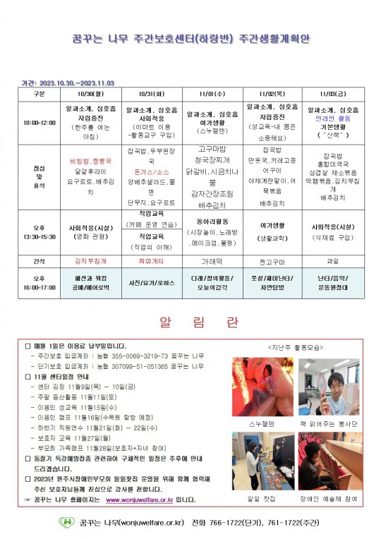주간계획안(하랑/윤슬/찬솔/라온)2023.10.30~