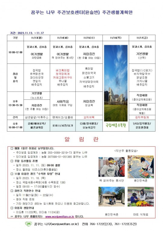 주간계획안(하랑/윤슬/찬솔/라온)2023.11.13~