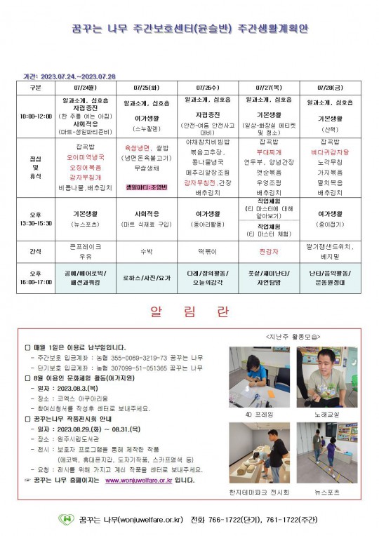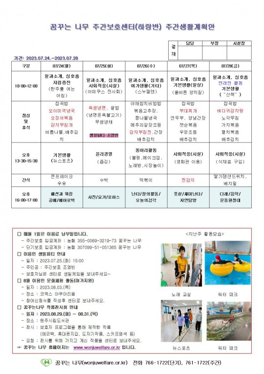 주간계획안(하랑/윤슬/찬솔/라온) 2023.07.24~