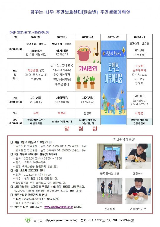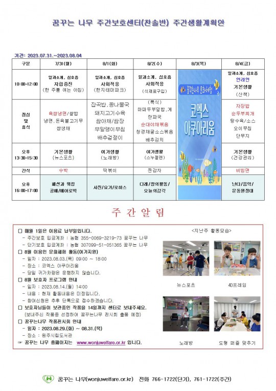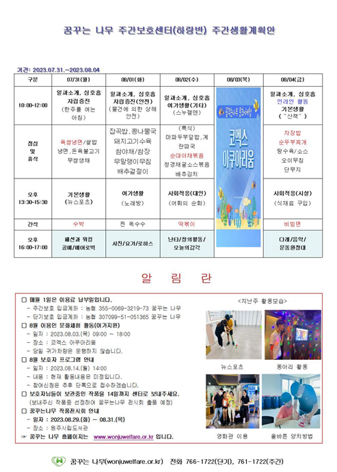 주간계획안(하랑/윤슬/찬솔/라온) 2023.07.31~