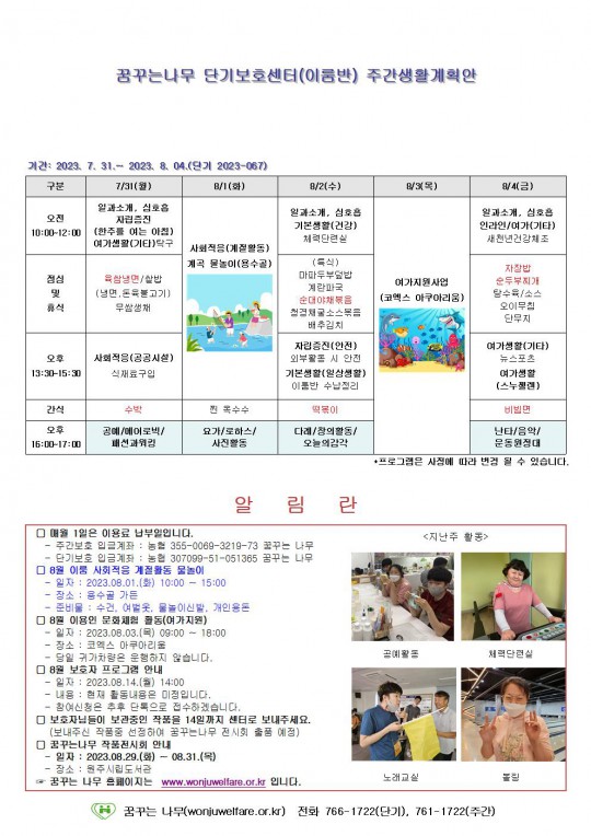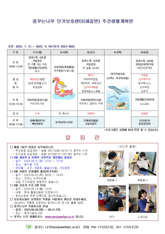 주간계획안(이룸/새길)2023.07.31~