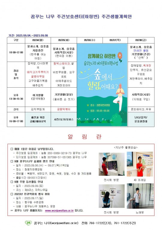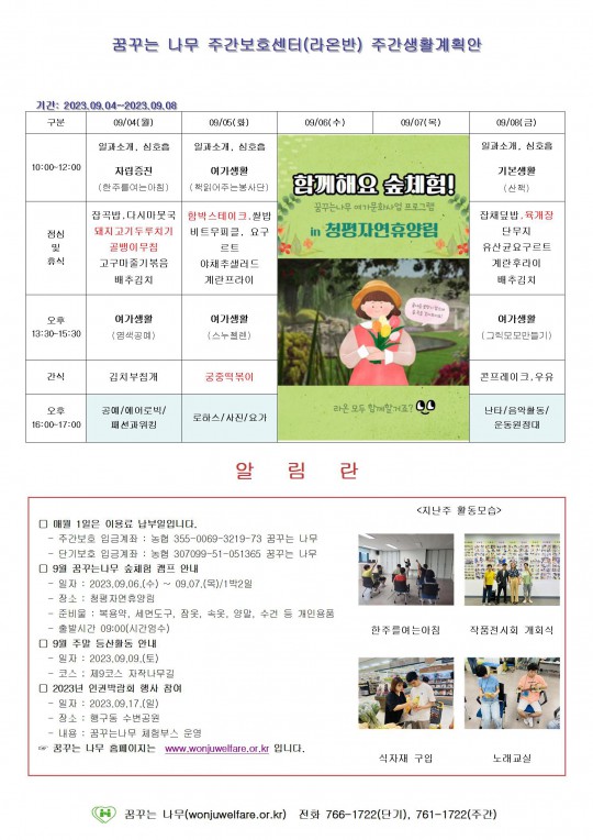 주간계획안(하랑/윤슬/찬솔/라온) 2023.09.04~