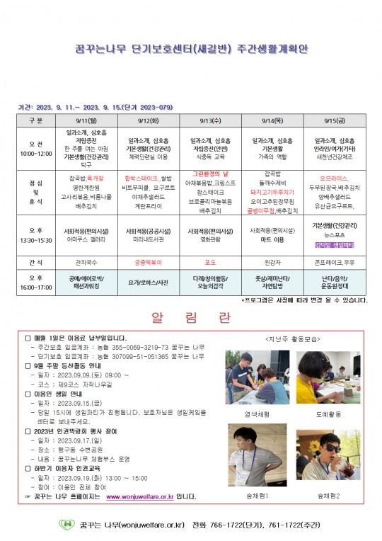 주간계획안(새길/이룸) 2023.09.11~