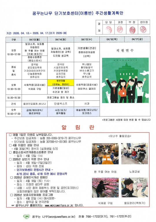 이룸반, 새길반 주간계획안(2026.04.13~04.17)