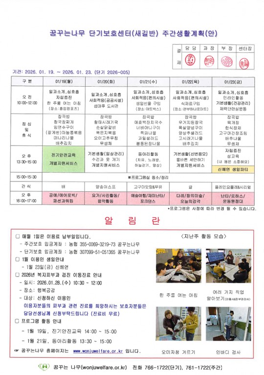 이룸반, 새길반 주간계획안(2026.01.19~2026.01.23)
