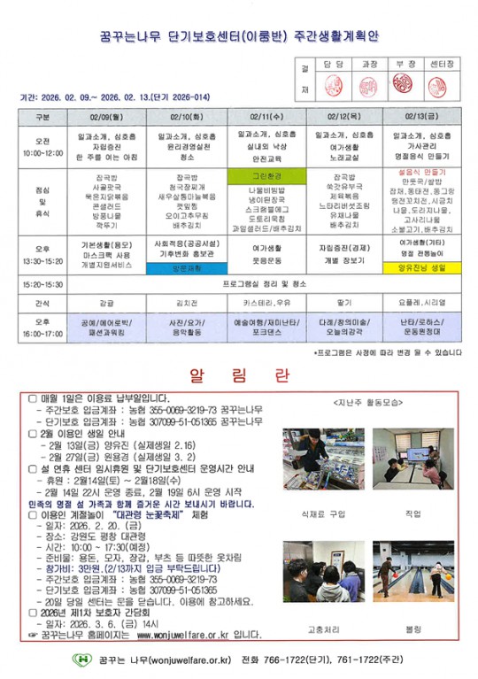 이룸, 새길 주간계획안(2026.02.09~02.13)