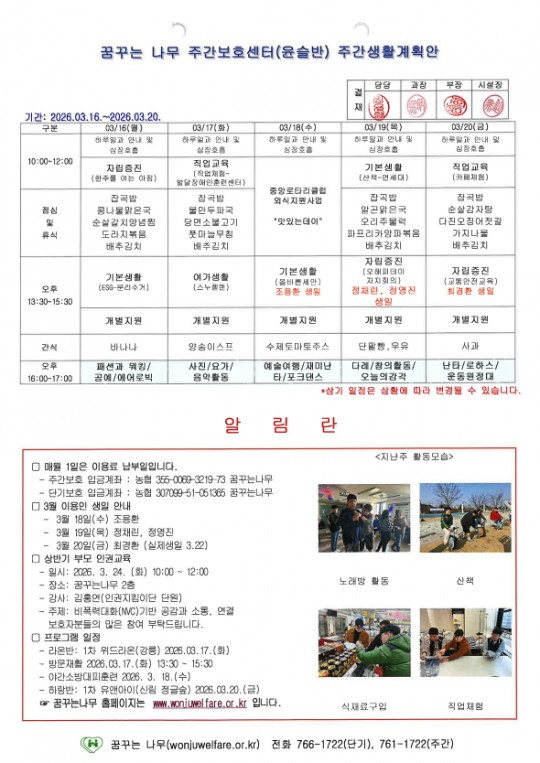 라온반, 찬솔반, 하랑반, 윤슬반 주간계획안(2026.03.16~03.20)