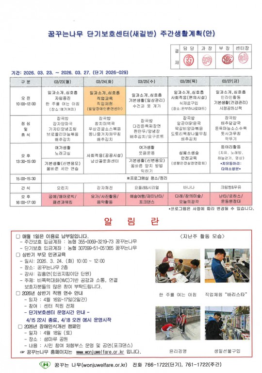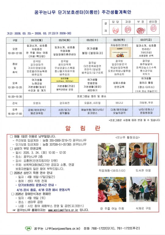 이룸반, 새길반 주간계획안(2026.03.23~03.27)