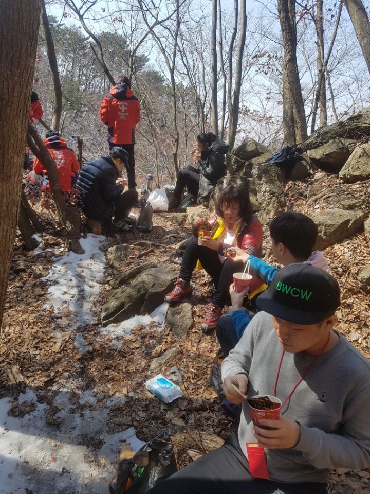 산에 올라가 맛있는 김밥도 먹고.. 산악구조대 회원님들이 준비해 주신 컵라면도 먹었습니다.