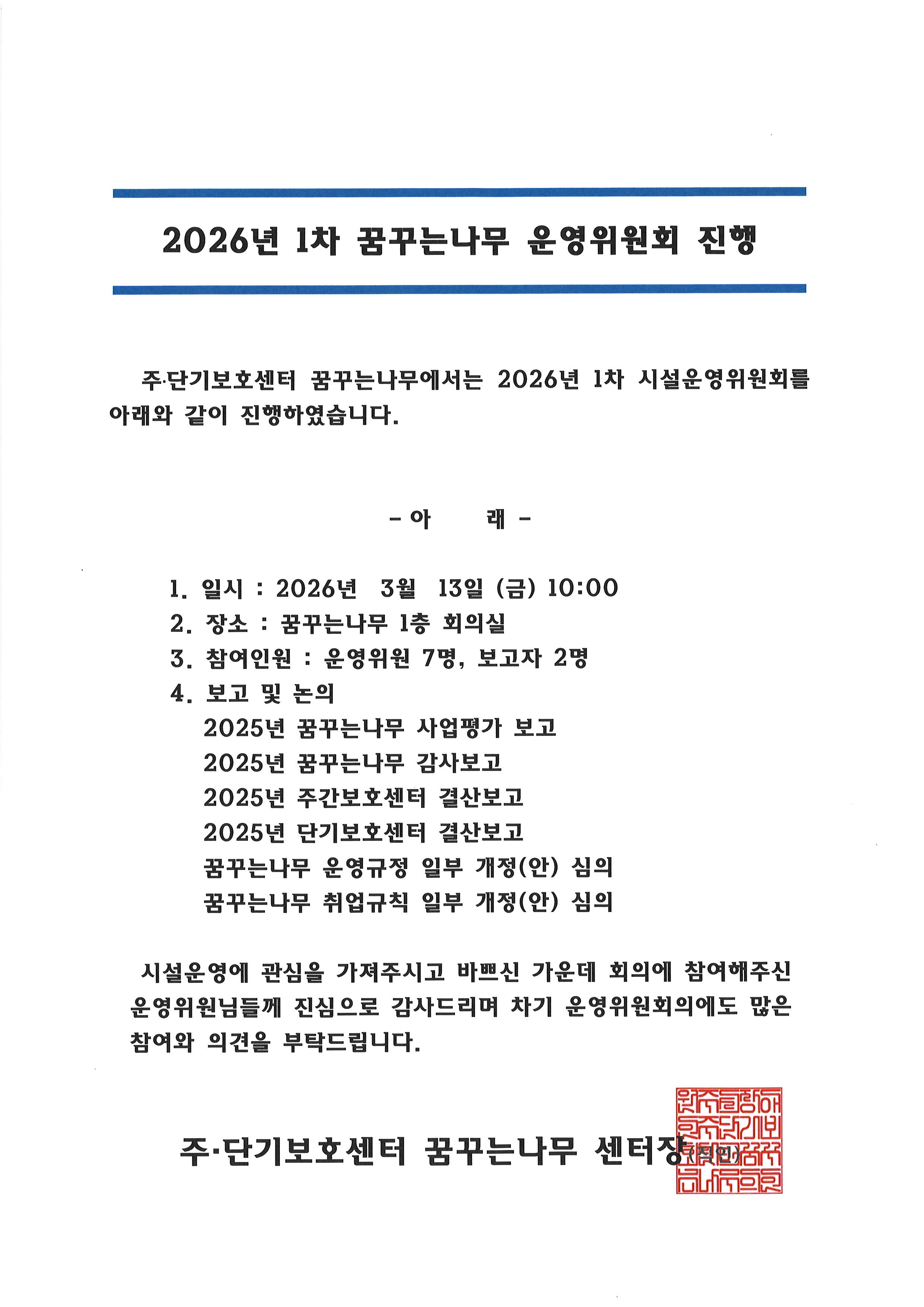 2026년 1차 꿈꾸는나무 운영위원회 진행