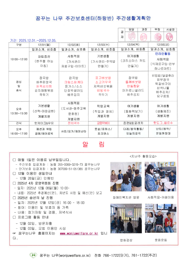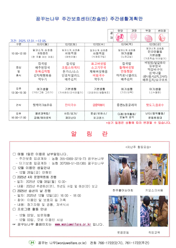 • 주간계획안
