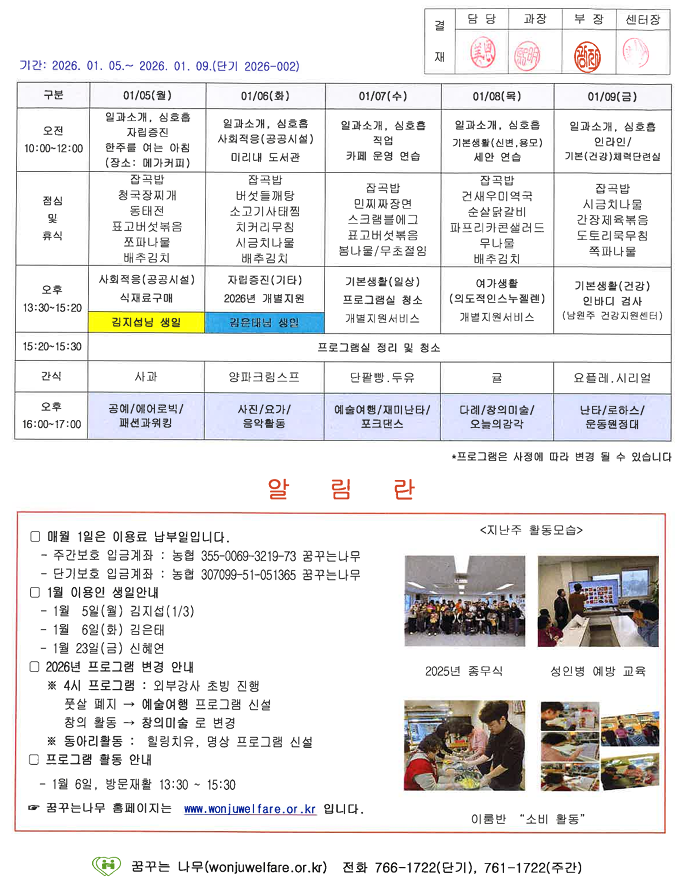 이룸반, 새길반 주간계획안(2026.01.05~2026.01.09)