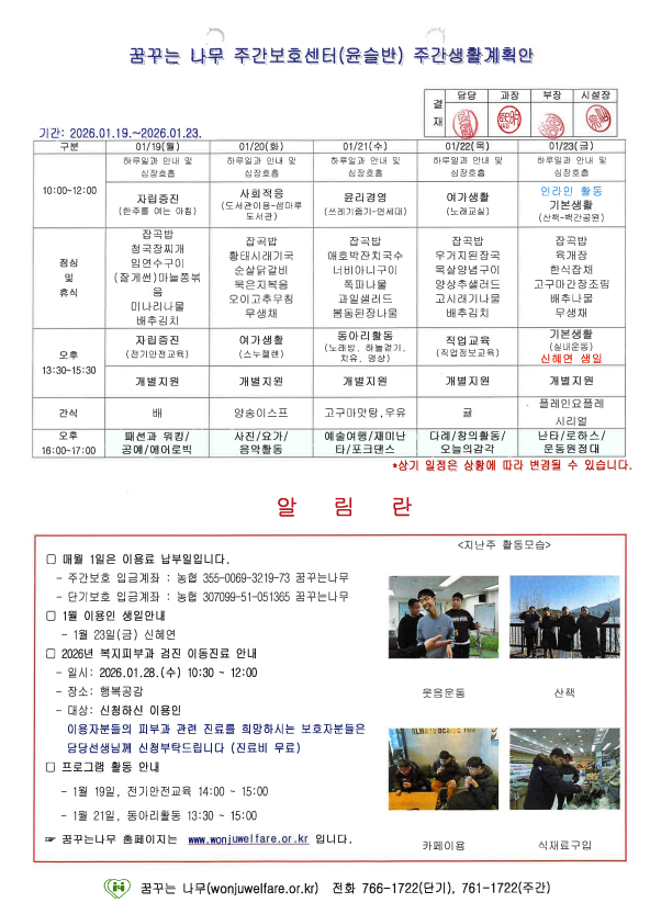 • 주간계획안