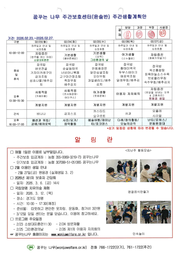 • 주간계획안