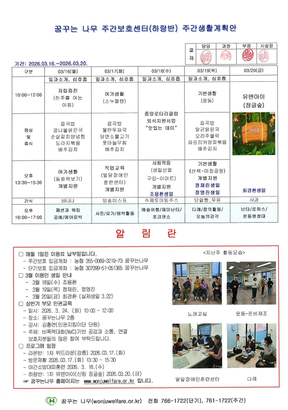 • 주간계획안