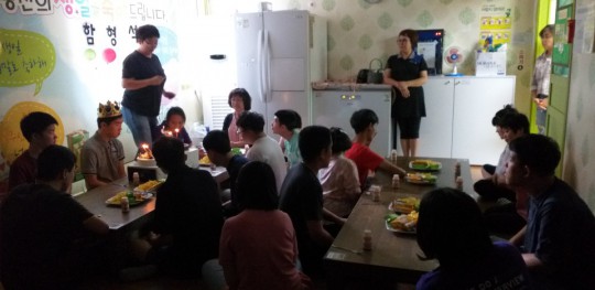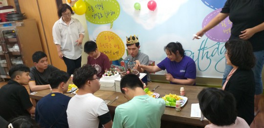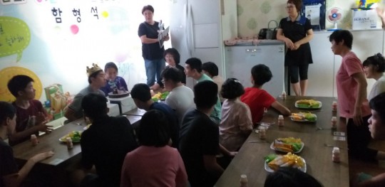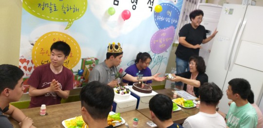 오늘은 함형석씨 생일입니다. 부모님께서 케익을 2개나 사서 보내셨고 센터에서 작지만 선물과 다과, 꽃을 준비했어요. 또 이용인분들이 스케치북에 각자 생일축하메세지를 남겼어요. 몇몇분들은 큰소리로 축하한다, 사랑한다 이야기를 합니다. 당사자도 즐거워하지만 축하를 해주는 이용인분들과 선생님들이 더 좋아하는 것 같아요. 축하받고 축하하는 맛있고 즐거운 시간.... 함형석씨 생일 진심으로 축하합니다.