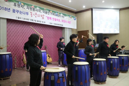 꿈꾸는나무 이용자분들의 난타공연과 탬버린율동 공연이 진행되었으며