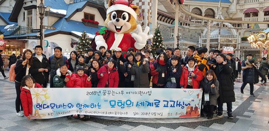 12월 14일, 서울 롯데월드로 체험활동을 다녀왔습니다. 다양한 놀이기구도 체험해보고 환상적인 볼거리로 인해 더욱 신나고 흥겨운 하루를 보낼 수 있었습니다. 체험활동을 다녀올 수 있도록 후원해주신 현대모비스 임직원 여러분과, 안전한 활동이 진행되도록 함께 동참해주신 자원봉사자 여러분께 진심으로 감사드립니다.