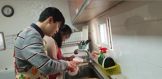 사회복지공동모금회에서 지원하는 교육프로그램, "행복한 밥상" 가사관리 활동이 1월 16일 진행되었습니다. 양파도 직접 씻어보고, 콩나물도 다듬어 봅니다. 준비된 각종 재료를 냄비에 담아 맛있는 부대찌개를 완성합니다. 맛있게 완성된 찌개를 먹은뒤 설거지도 하여 함께 마무리 합니다. 일상생활 속에서 자립능력을 향상하기 위해 삶은 연습이 필요할 때도 있답니다..