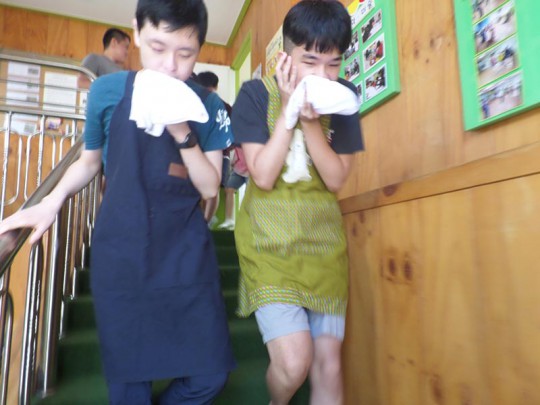 화재가 발생하였을 때 효율적으로 피난하거나 대처하기 위해 실시하는 훈련인 소방훈련이 22일 진행되었답니다. 화재시 발생하는 연기, 유독가스로부터 보호하기 위해 젖은 수건으로 코와 입을 막고 자세를 낮게 엎드린 상태로 신속히 외부로 대피하는 훈련이었답니다. 재빠르게 대피하는 우리 친구들..긴박감이 느껴지는데요..