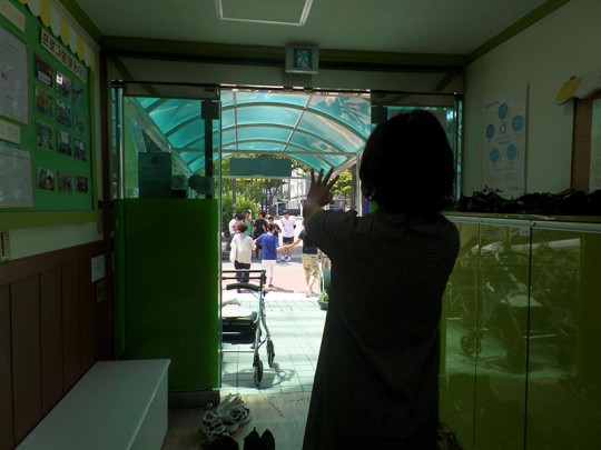이웃 경로당 어르신들을 반갑게 맞이해 주시는 원장님..