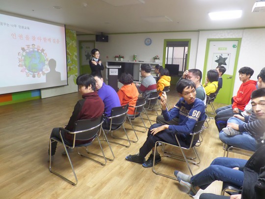하반기 이용인 인권교육이 11월 22일(수) 진행되었습니다. 나의 감정표현 방법과 인권 바로 알기, 서로의 인권을 지키는 방법등 눈높이에 맞는 유익한 교육을 김홍연 강사님께서 진행해 주셨답니다. 반복되는 인권교육을 통해 이제는 자신있게 말할 수 있습니다. "나는 소중해요~" "우리는 모두 소중해요~"
