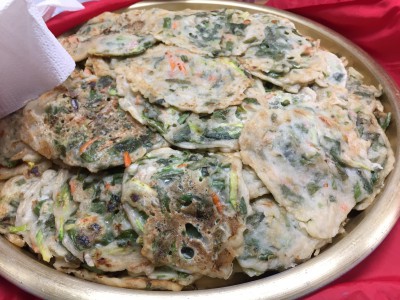 김치를 받으시는 경로당 어르신들은 받기만 할수 없다며 손수 야채전을 부쳐오셨어요.