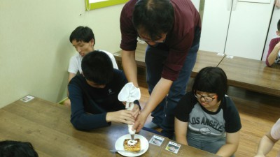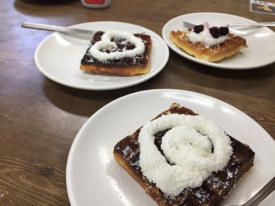모두들 뿌듯한 마음으로 본인이 만든 와플을 맛있게 시식해 봅니다.
