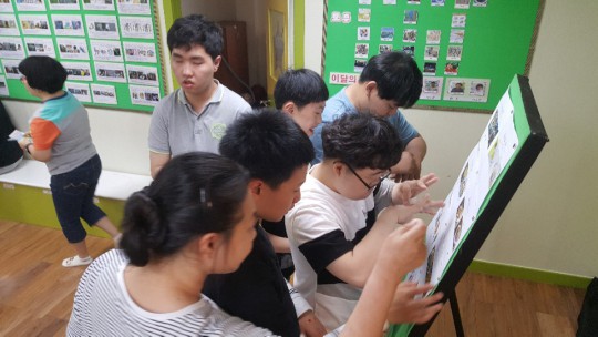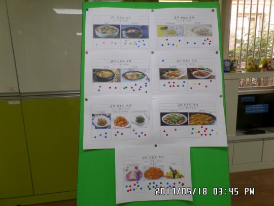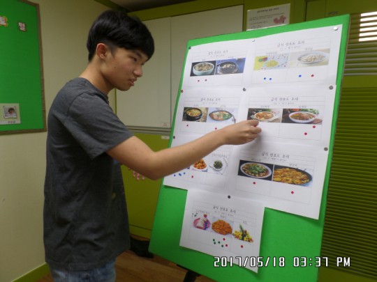 이용자분들의 만족도를 높이기 위한 급식선호도 조사가 오늘 진행되었습니다. 6월달에는 어떤것이 가장 먹고 싶은지 음식이미지 카드에 스티커를 붙이는 방법으로 진행되었는데요 음식을 선택하는 표정이 사뭇 진지합니다.