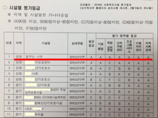 보건복지부에서 주관하는 2016년 사회복지시설 평가에서