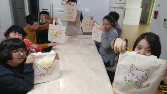 오늘은 여가생활 프로그램으로 폐션 페인팅을 하였습니다. 가방에 그림을 그리기도 하고 물감으로 콕콕 찍어 나만의 멋지고 예쁜 가방을 만들었습니다. 이 세상에 하나밖에 없는 가방에 이용인들 얼굴에 웃음이 떠나질 않았습니다. 그림을 잘 못그려도, 예쁜게 색칠을 잘 못해도 ..그리다 실수를 했어도.. 개성 넘치는 우리친구들의 가방이기에 저의 눈에는 한없이 예쁘게만 보입니다. 아마 친구들도 그렇겠죠?