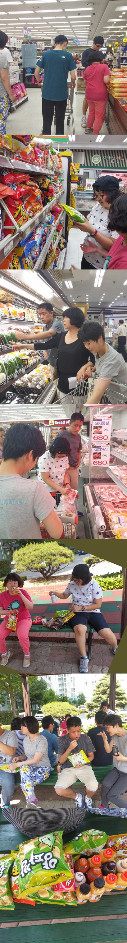 매주 월요일 친구들과 직접식재료를 구입하여 안전한 먹거리를 제공하고 있습니다. 마트이용후 다솜씨가 가져온 용돈으로 친구들에게 시원한 음료와 과자를 사주었습니다 아이들이 어찌나 좋아하던지 맛있게 먹고있는데 삼천리 교회건사님께서 5만원을 주시며 친구들에게 아이스크림사먹으라고하셔서 감사히 잘 받았습니다. 항상 우리아이들에게 사랑과 관심을 주시는 모든 분들께 다시한번 감사하다는 말씀 드립니다♥_♥