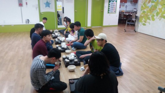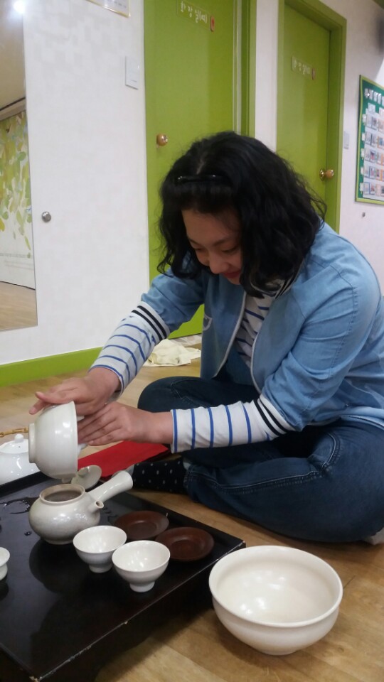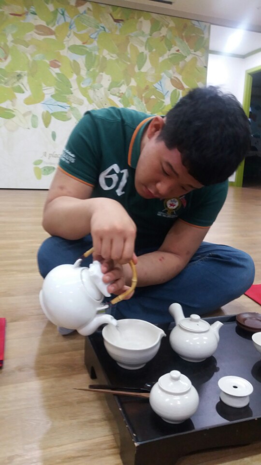 자유시간에 웃고 장난치던 친구들의 모습은 다 어디로 가고~~ 차를 따르는 모습이 모두들 진지하기만 합니다^^
