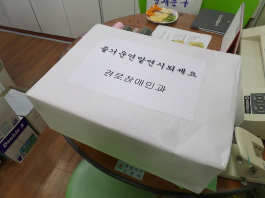 강원도 경로장애인과에서 저희 기관에 보내주신 관심과 사랑에 감사드립니다. 시설도 함께 돌아보시고 귤1박스를 후원해 주셔서 저희 이용자들과 함께 맛나게 먹고 힘차게 2016년을 준비하겠습니다. 감사드립니다. 2015년 12월 24일 꿈꾸는 나무 올림