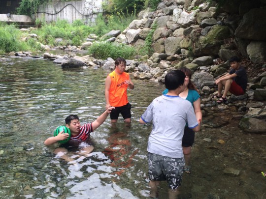 우리 친구들이 물에서 나오지 않으려고도 할 정도로 물이 너무 맑고 시원했습니다.