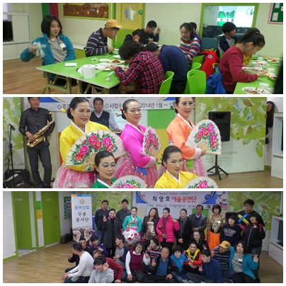 11월 21일(금) 단구동 바르게살기위원회에서 저희센터를 방문하여 저희 센터 이웃에 있는 경로당 어르신들과, 장애인시설 이용자들을 초청하여 맛있는 자장면을 만들어 주셔서 맛있게 먹었습니다. 점심 식사 후 오후에는 최영호 예술공연단의 멋진 춤과 노래로 저희를 흥겹게 해 주었습니다.