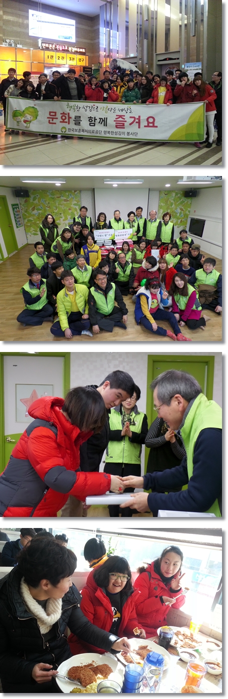 2월 13일 보훈공단 임직원분들과 함께 즐거운 영화관람을 하였습니다. 맛있는 돈까스도 먹고, 즐겁게 영화도 관람했어요. 다들 너무 즐거워 하며 하루를 보냈다는 후문입니다. ^^ 아! 꿈꾸는 나무 친구들의 맛있는 양식이 되어 줄 쌀이 많이 후원해주셨답니다. 감사드립니다. 소중한 인연 쭉~이어졌으면 좋겠습니다.